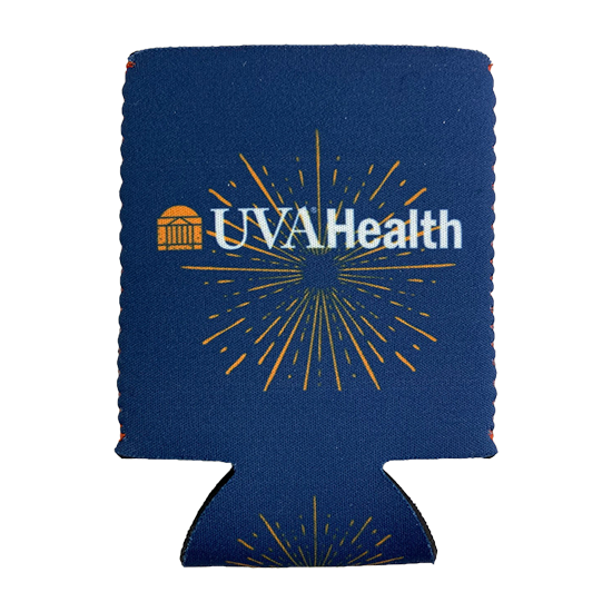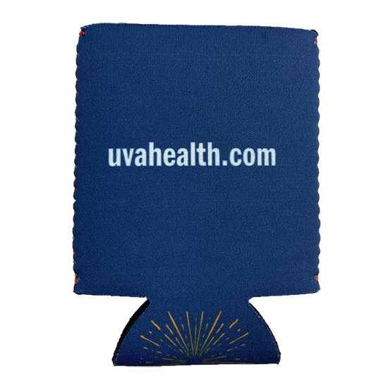 Includes two color UVA Health Logo with the broken oculus on the front AND bottom. UVAHEALTH.COM is imprinted in one color on the back. It also features contrast orange side stitching.